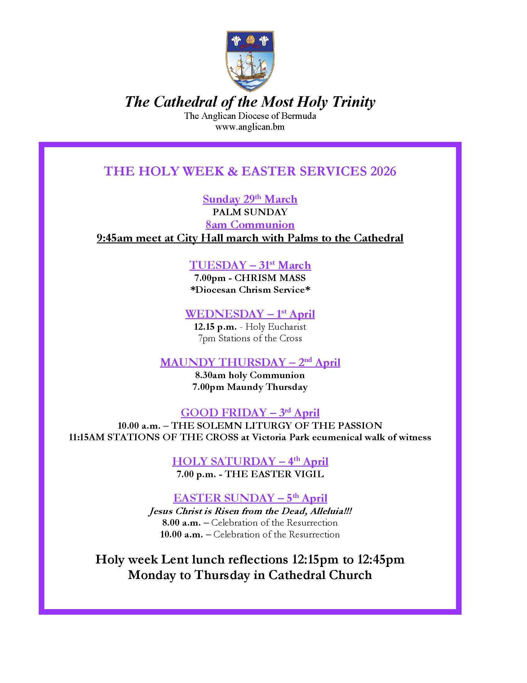 The Holy Week & Easter Services 2026